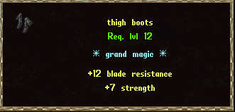 thigh boots +7 STR, +12 blade resist ![]() thigh boots +7 STR, +12 blade resist | 1 | 70,000 gp | 70,000 gp | — | @gobi1 | 4d old | Message |