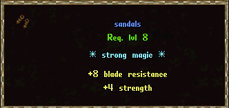 sandals +4 STR, +8 blade resist ![]() sandals +4 STR, +8 blade resist | 1 | 25,000 gp | 25,000 gp | — | @gobi1 | 4d old | Message |
