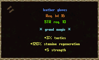 leather gloves +5 STR, +3% tactics, +120% stamina regen ![]() leather gloves +5 STR, +3% tactics, +120% stamina regen | 1 | 90,000 gp | 90,000 gp | — | @gobi1 | 4d old | Message |