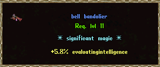 bell bandolier +5,8% EI ![]() bell bandolier +5,8% EI | 1 | 40,000 gp | 40,000 gp | — | @gobi1 | 4d old | Message |